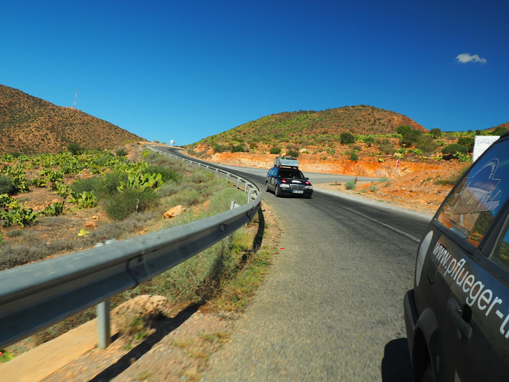 Empört wurden samtliche Papiere eingefordert, Fahrzeugschein, Versicherungsschein, die marokkanische Personenkontrollnummer, Zollpapiere - und die beiden wurden abgeführt in die Wache. Auf dem Weg dorthin sahen wir einige andere Rallyeteilnehmer an uns vorbeifahren - für die war keine Zeit mehr, Glück gehabt.